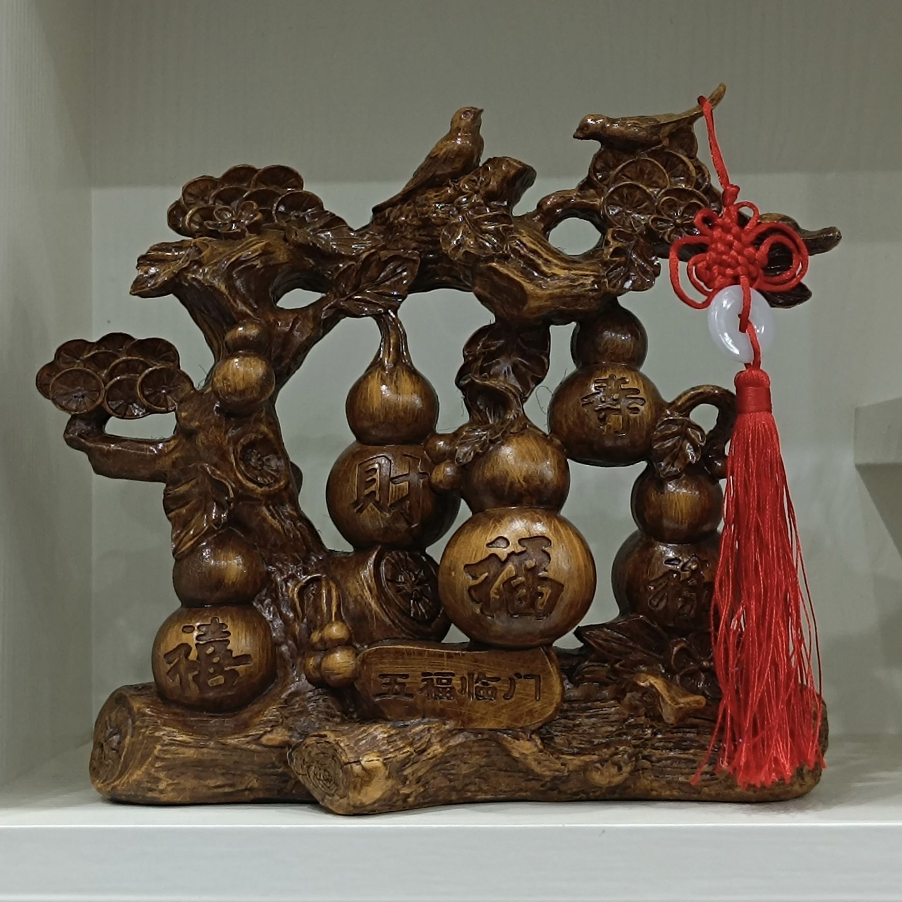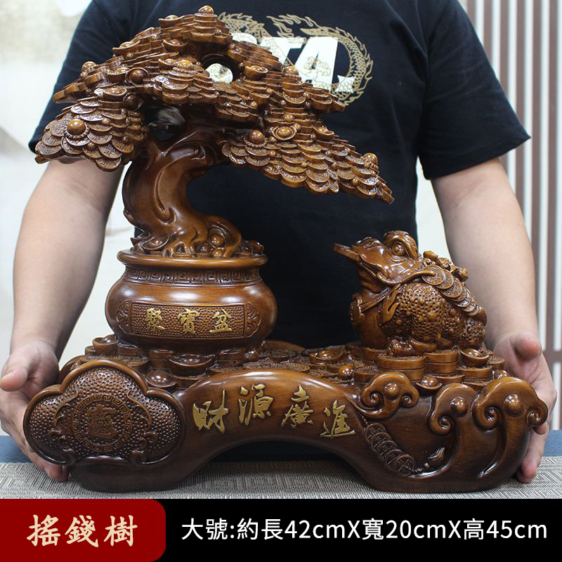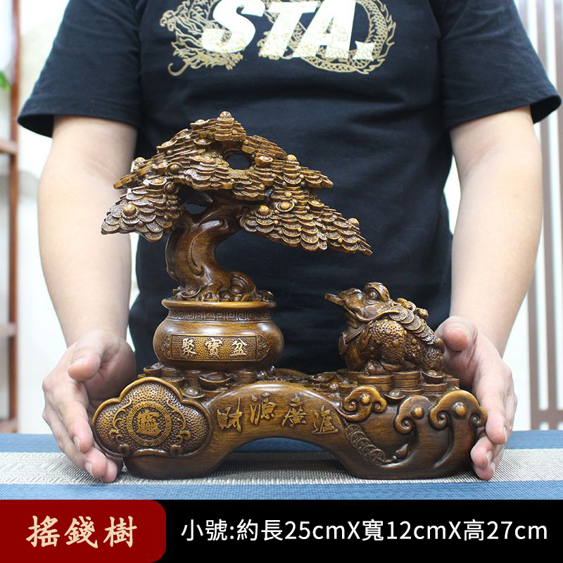 這尊鎮宅招財擺件,取材於天然實木