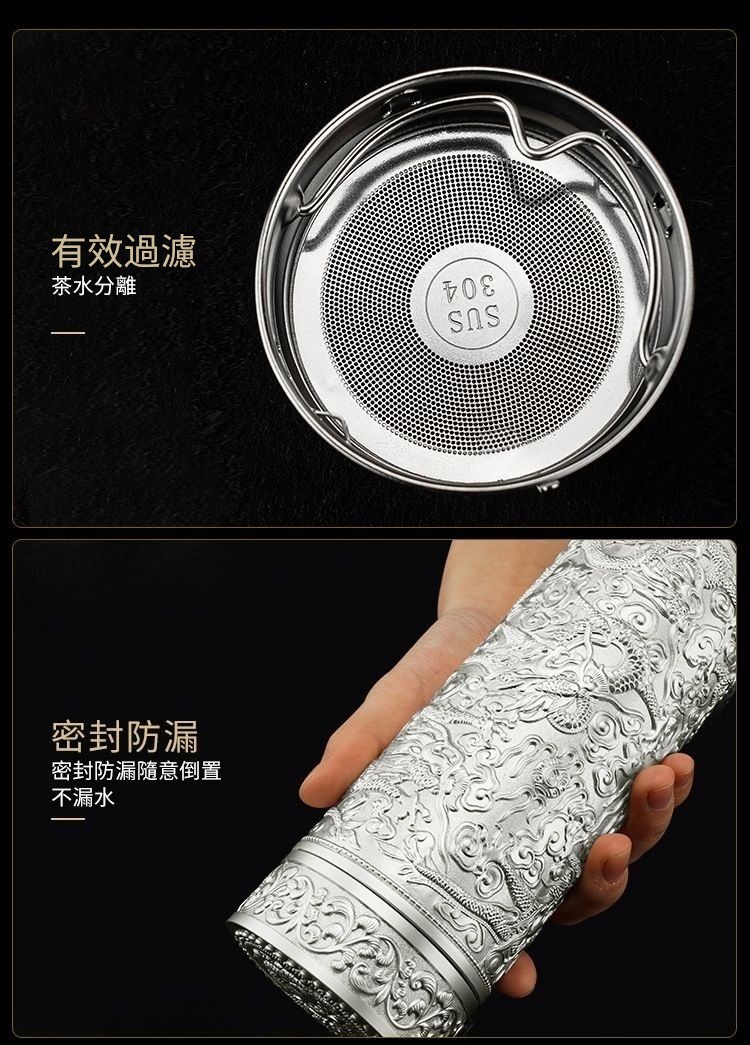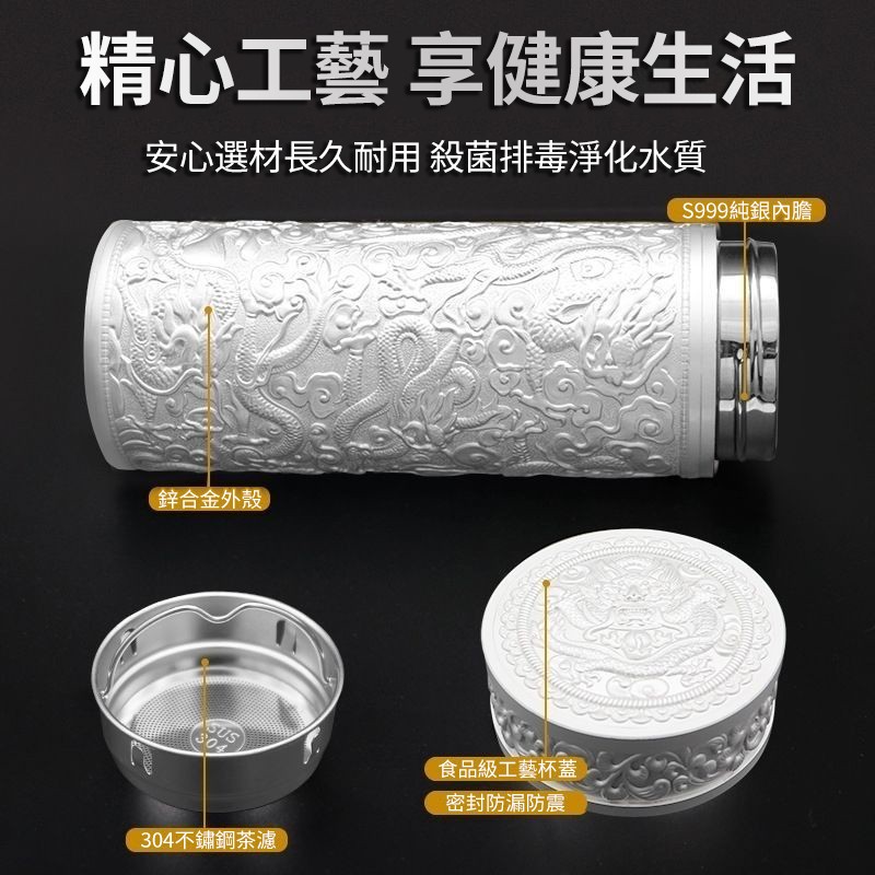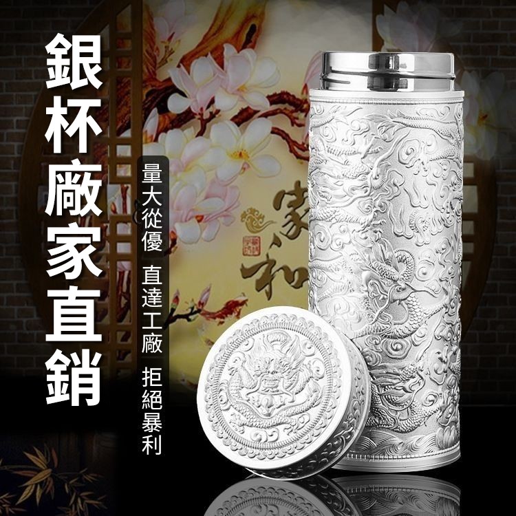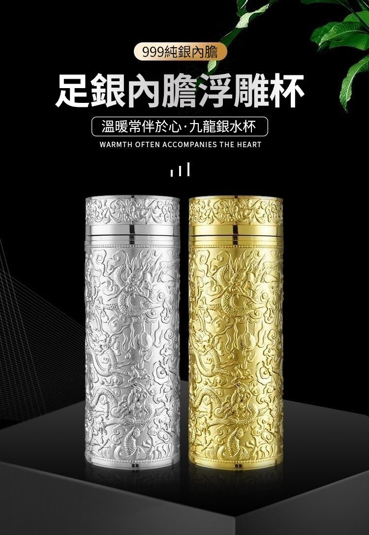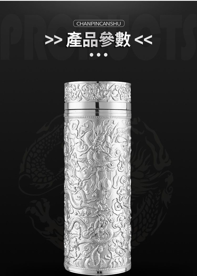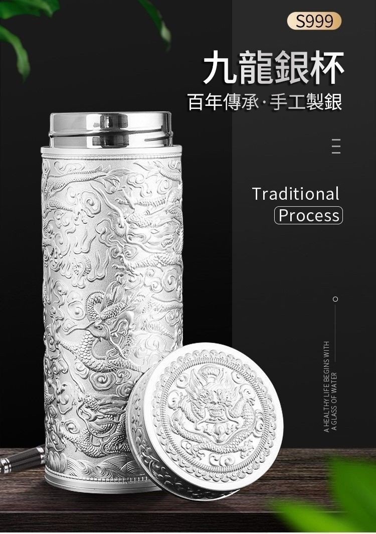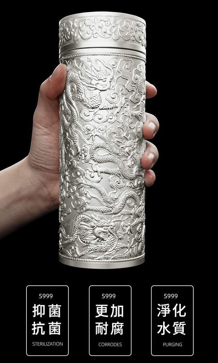 999足銀內膽 純手工浮雕設計 九龍纏繞杯身