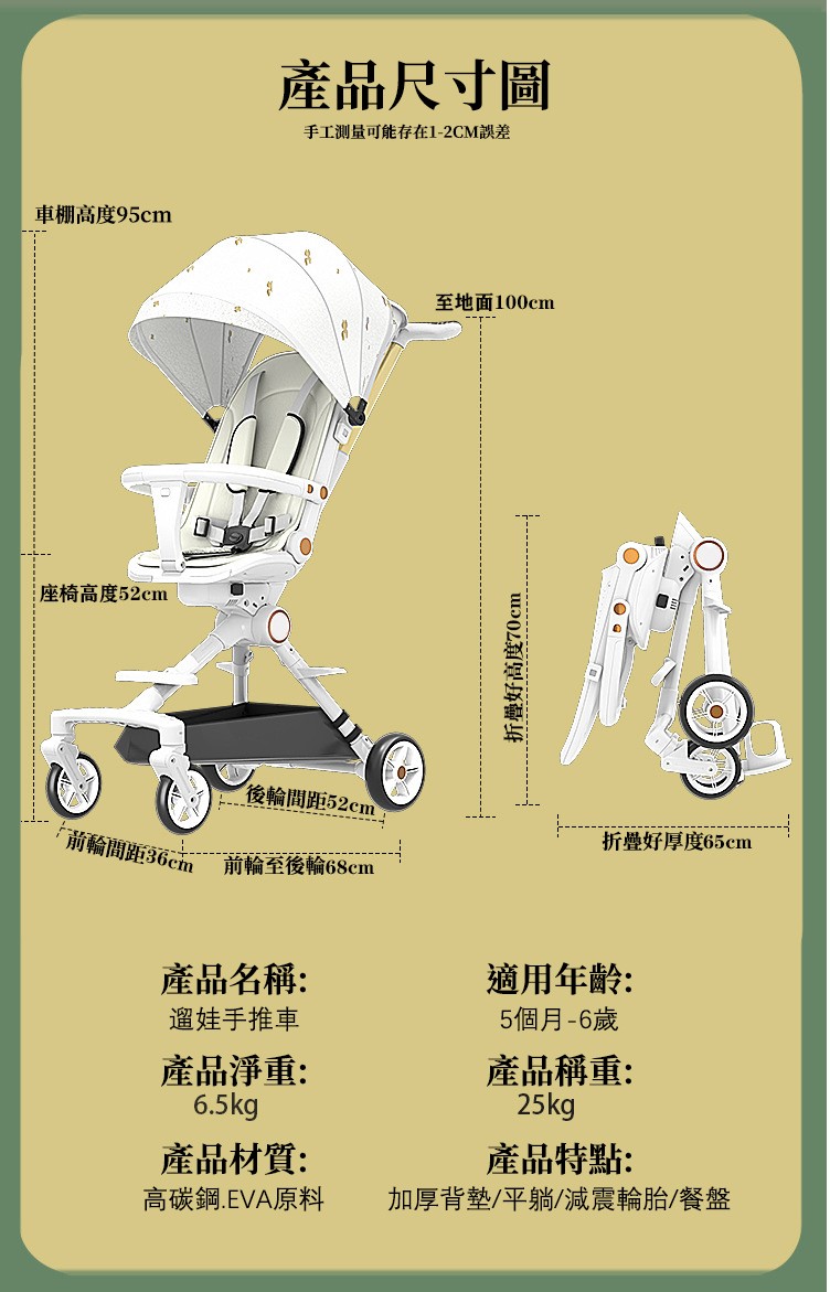 4分鐘前好康來襲 【遛娃好幫手】可坐可躺手推車 輕便可折疊 0-5歲都適用 - 【經典款】+遮陽帘+餐盤腳托+禮品