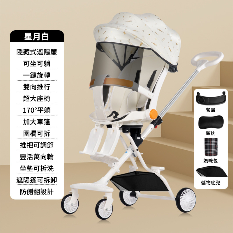 4分鐘前好康來襲 【遛娃好幫手】可坐可躺手推車 輕便可折疊 0-5歲都適用 - 【豪華款】+可坐可躺+遮陽帘+餐盤腳托+禮品