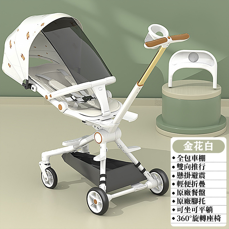 2分鐘前好康來襲 【遛娃好幫手】可坐可躺手推車 輕便可折疊 0-5歲都適用 - 【豪華款】+可坐可躺+遮陽帘+餐盤腳托+禮品